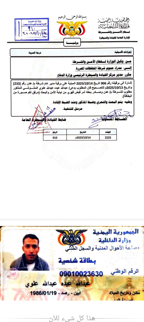 - إبراهيم الرضامي، جندي في اللواء الثالث دعم وإسناد، تم ضبطه أيضًا من قبل أمن عدن.