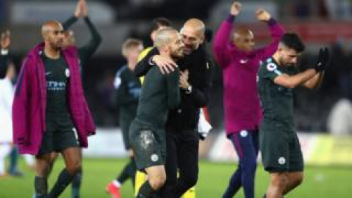 سجل فريق مانشستر سيتي رقما قياسيا في عدد الانتصارات المتتالية عندما سحق مضيفه سوانزي سيتي بأربعة أهداف مقابل صفر.