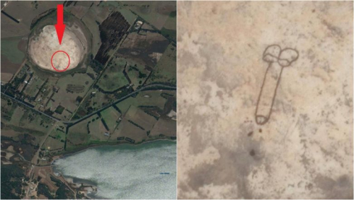 تعرف إلى قصة الرسم الهائل لـ “العضو الذكري ” الذي تم اكتشافه من الفضاء بقاع بحيرة أسترالية